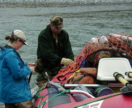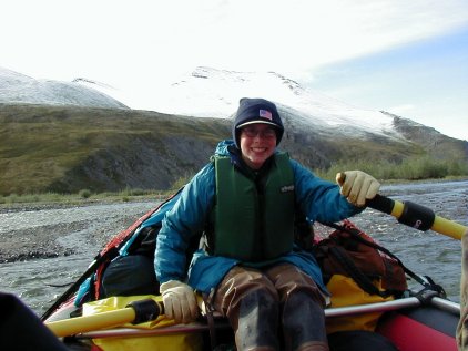 Lisa's Trip Journal (abridged) 4 Aug 2002 (Sunday): Wake up, no bugs(relief!). Arrive Coyote Air. Left at 11:30 when we took off. Thought Dan's GPS was cool. Plane was a beaver (not made anymore). dozed during flight (!). Put raft together in sunshine, started down Kongakut in overcast. No rain. 3 mi continue dragging. Before we left there were some teens spent 42 days out here. VERY excited to be back. Campsite had Antler marking beach (gravel). 5 Aug 2002 (Monday): Woke up. Blue skies. Went for hike w/ Dad, found caribou antler & baby carobou antler. Started rafting. Rained, rained, rained. Wet, miserable and hypothermic. Wonder if I will live? 2 pairs of socks. Mossy campsite. Saw a golden grizzly. 6 Aug 2002 (Tuesday): Got up - ICE on tent where it had rained. Felt awful, icy toes. Becky and Dans aniversary. Wore 5 pair of socks, 3 pants, 7 Aug 2002 (Wednesday): Half way until I'm out of here. Rain, not frozen, on tent (wow!). Saw sheep, rapids were easy. 8 Aug 2002 (Thursday): Saw a ton of sheep (7) and a male carobou. Did 6-7 miles on the raft. It was funny because Dad was on the front boncing up and down like a young adolesecent. Just 3-4 miles from take out. 9 Aug 2002 (Friday): Saw an eagle and a fox. And some grayling fish. Got up this morn and hung out for a long time. Becky gave me some fishing lessons. 10 Aug 2002 (Saturday): Woke up. Sun was shining through the tent. Figures, the 7 day we don't need sun - it is sunny. 11 Aug 2002 (Sunday): Dan's thinking about hunting chicken for lunch (cheep cheep), Dad's reading his book. Becky and I are warming up by the fire. The flight service (hah!) said that they are fogged in that they first hace to go rescue some other poor folk so that we have been waiting to leave. Then they fly (!) to take us out! God, will we never get out of here? |