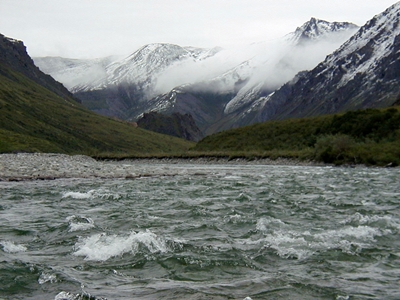 U.S. Fish & Wildlife Service DescriptionThis is the only major river whose entire course is within the refuge's designated wilderness. Beginning high in the eastern Brooks Range, the Kongakut flows east and then north through rugged mountains to the coastal plain and the Beaufort Sea. Clear water, scenery, wildlife, fishing and access combine to make the Kongakut the most floated river on the Refuge. At average flow rates, its waters are generally class I and II, but there are stretches of class III. |