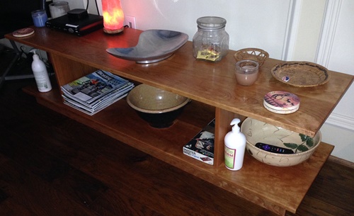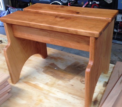 Shaker-style stool, cherry. One of my first hand-cut dovetail projects. Note this stool split at the top of the arch. Fixed by adding a couple of biscuts on each side. Since the, I've always added biscuts when edge gluing boards.